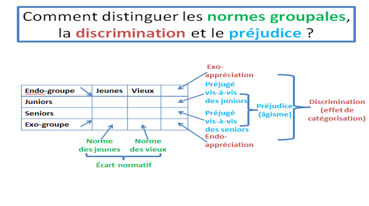 On est parti des effets liés à la catégorisation sociale (CS) mis en évidence par Tajfel : – contraste (Tajfel & Wilkes, 1963) comme « biais » cognitif automatique, – assimilation stéréotypique (Tajfel & Wilkes, 1964 ; Tajfel, Scheikh & Gardner, 1979 ; Castel, 2007) comme « biais » social lié aux stéréotypes, et surtout – autofavoritisme (Tajfel, Billig, Bundy & Flament, 1972) comme endo-favoritisme et/ou exo-défavoritisme. Ces effets, en particulier le dernier, s’expliquent dans le cadre de la Théorie de l’identité sociale (la TIS ; Tajfel & Turner, 1979) avec l’idée que l’identité sociale provient de l’appartenance à un groupe et que le sujet cherche à obtenir la meilleure identité possible en faisant gagner son camp sur l’autre en situation de comparaison sociale.