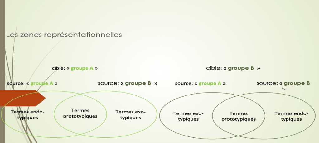 EXO-REPRESENTATION : R[x;Y] {rY}, la représentation de l’exogroupe, les éléments (ou les adjectifs) caractérisant l’autre catégorie (exocité, C[x;Y] {cY})